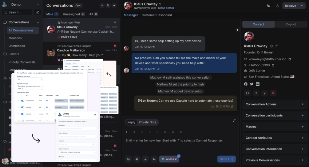• Team Collaboration: Assign chats, leave internal notes, and work together seamlessly.